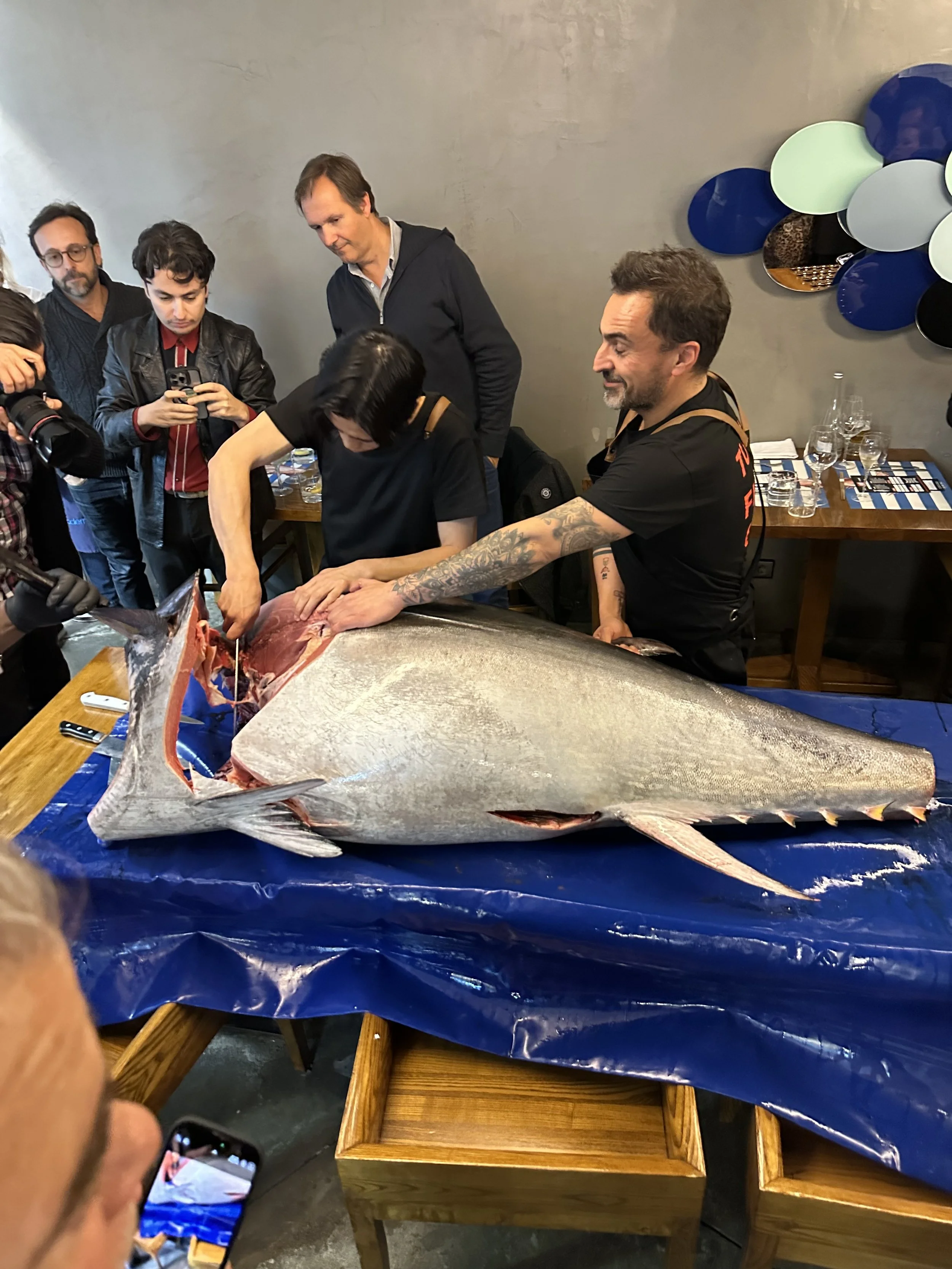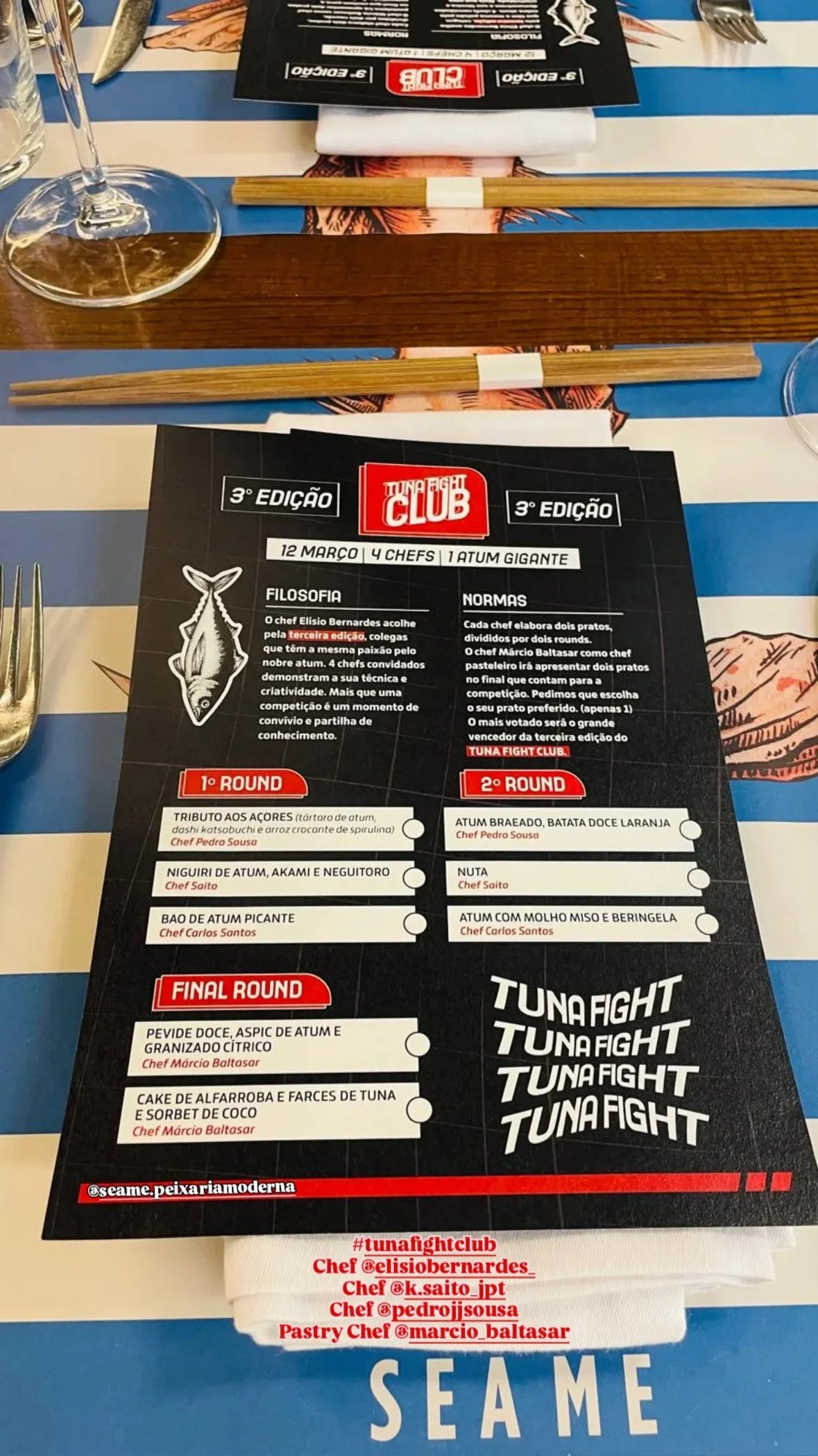 Em março, realizei um evento com o Elísio Bernardes, alguém que eu já queria conhecer pessoalmente há muitos anos. Como se costuma dizer, "o homem que não luta, não triunfa". Foi muito gratificante participar no "The Tuna Fight Club", um evento que já se tornou uma referência em Lisboa e que junta sempre Chefes com grandes dinâmicas. Criei duas sobremesas com partes do atum: uma espécie de aletria, feita com massa pevide, e um bolo de alfarroba com caramelo de gordura de atum e coco. (O sabayon é que não correu assim tão bem, pronto! $$$$$$$).