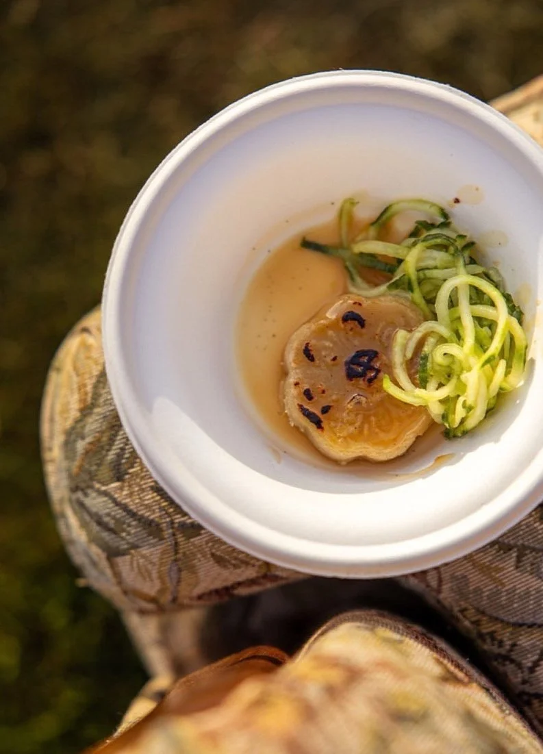 De volta ao Algarve, participei em mais um pop-up do Chefs on Fire em Vilamoura. Confesso que não consigo viver sem o melhor festival de Portugal: comida de fogo, bebidas e música! Apresentei a minha versão de Mitarashi, que chamei de "Mitarashi Algarvian". A base era um marzipan ligeiramente grelhado, recheado com chocofigo (uma pasta de figo seco, alfarroba, cacau e amêndoa). O conjunto era glaceado com um miso da Kinferments, do João Alves, e acompanhado por pepino e sumo de lima. Um agradecimento especial à Mariline Pinguinhas e à Escola de Hotelaria de Faro pela ajuda no evento. Ai, Rosinha...